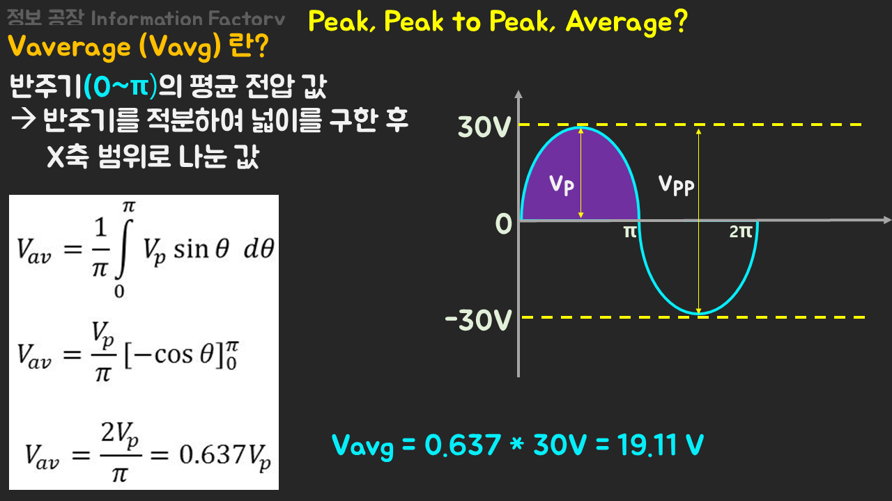 수식을 풀면 Vavg = 0.637 * Vp 이기 때문에