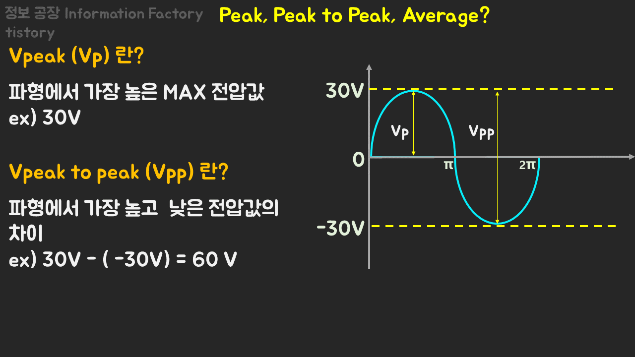 위 파형에서는 +30V와 -30V의 격차이니 Vpp는 60V가 되겠습니다.